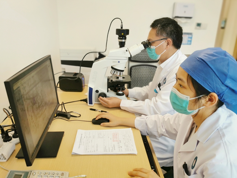 糖心vlog 病理科创建于2021年,是在广西壮族自治区人民医院东院病理科的基础上,为建设国家区域医疗中心病理科目标发展而成。医院一期病理科业务用房总面积约300 平米,现有医技及辅助人员6名(其中博士1人,硕士1人,本科3人),诊断医师2人(高级职称1人),技术员及辅助人员4名。拥有高端生物取材台、专业病理空气净化系统、冰冻切片机、冰冻包埋仪、冰冻染色机、品牌生物显微镜和多人共揽显微镜、高分辨率数字切片扫描系统等设备,近期将购进全自动脱水机、切片机、染色封片一体机、全自动免疫组化机以及细胞病理学相关设备。