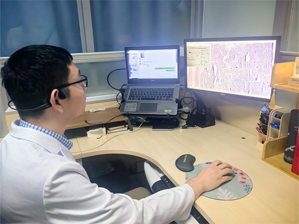 中山一院广西医院作为中山大学附属第一医院输出建设的国家区域医疗中心单位,通过远程病理诊断平台,使病理专家打破时间和空间的限制,为患者提供精准的诊疗方案,减轻患者及家属的经济负担,让老百姓在家门口就能享受到同质化医疗服务。(来源:病理科 马承丽/文 韦日曼/图)