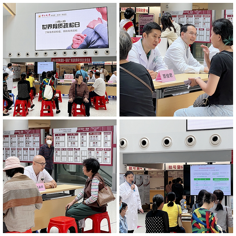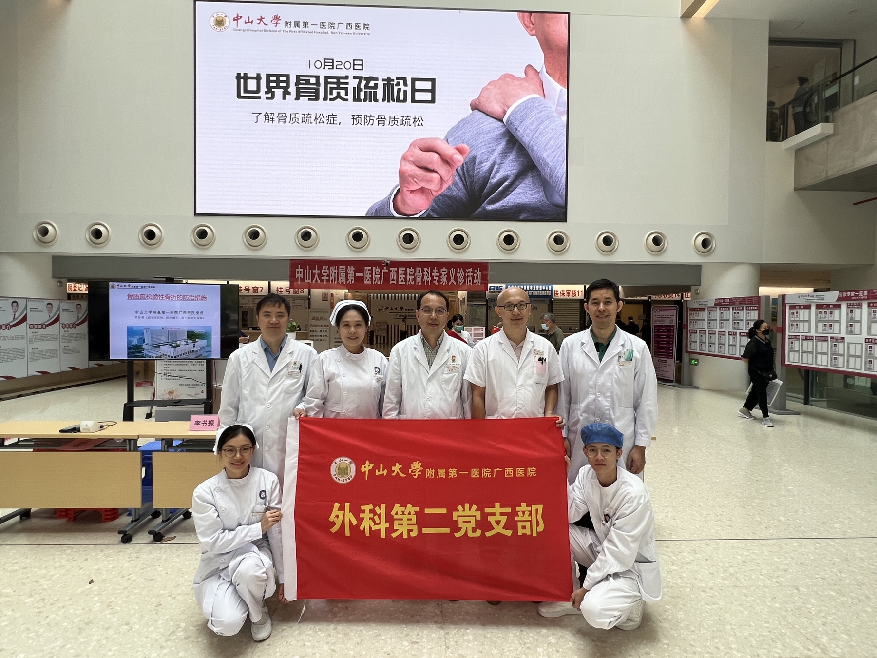 为帮助骨质疏松高危人群的“早发现、早预防、早治疗”,从而降低骨质疏松骨折,提高老年人的健康水平和生活质量,10月20日,糖心vlog (自治区人民医院东院)(简称中山一院广西医院)骨科开展了“世界骨质疏松日”义诊活动。本次义诊活动由骨科执行主任李书振带队,并由欧裕福副主任医师、覃俊君副主任医师、吴永祥副主任医师等组成专家团队,为群众健康把脉。