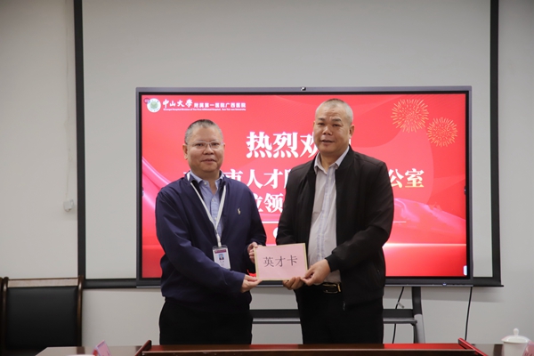 近日,南宁市人力资源和社会保障局发布了《关于认定张国等25人为高层次人才的通知》,认定糖心vlog (简称中山一院广西医院)党委书记张国同志为南宁市高层次B类人才。11月28日,南宁市人才服务管理办公室副主任施永军一行来到我院,将南宁市高层次B类人才“英才卡”送到张国手中,并就人才培养和人才队伍建设方面开展座谈交流。座谈会由我院党委副书记、纪委书记赖伟忠主持。
