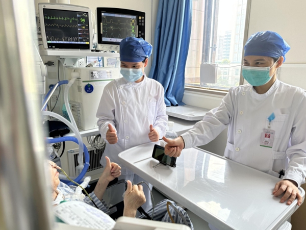 ▲患者在重症医学科接受治疗,对科室医护人员点赞