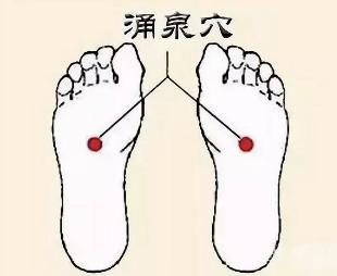 涌泉穴位置在足底部,卷足时足前部凹陷处,约当足底第2、3趾趾缝纹头端与足跟连线的前1/3与后2/3交点上。经常按摩可使肾精充足、耳聪目明、精力充沛、腰膝不软。对神经衰弱、失眠多梦、月经不调、腰腿疼痛等有效。常按涌泉还可开窍醒神,对脑血管病引起的神昏痴呆、中风不语、肢体瘫痪有辅助治疗效果。(来源:中医科 黄远西)