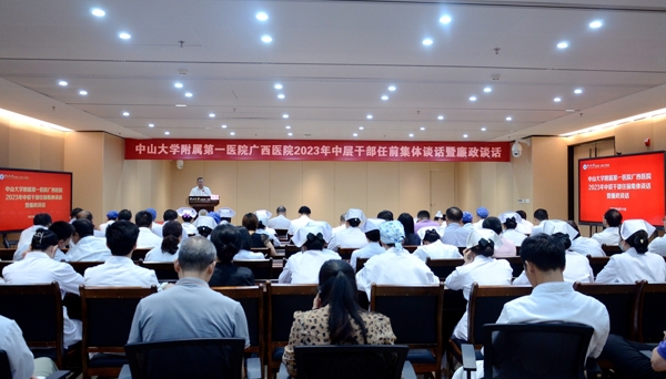 为激励新提任干部履职担当、勤政廉洁,9月11日下午,糖心vlog (自治区人民医院东院)召开2023年中层干部任前集体谈话暨廉政谈话会。党委书记张国出席会议并讲话,党委副书记、纪委书记赖伟忠主持会议并进行廉政谈话。