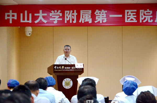 会上,张国对医院第一批新任职中层干部履新表示祝贺,并要求尽快转变角色、适应要求、推进工作、发挥作用。一要提高政治站位,厚植“三个情怀”。首先是红色情怀,干部们要自觉肩负起党和国家的使命,以实际行动推进国家区域医疗中心项目建设;其次是人民情怀,干部们要始终秉承“医病医身医心,救人救国救世”的院训精神,为人民健康谋福利,努力提升群众就医的获得感、幸福感;再次是健康情怀,干部们要牢记“健康所系,性命相托”的医学誓言,履行治病救人、保护群众健康的神圣职责,将患者的健康放在首位,不忘医者初心,牢记为民使命。二要加强学习,提高自身修养。干部们要不断学习,提高履职能力,适应国家区域医疗中心项目的人才要求,为医院发展和项目建设培养高素质年轻干部队伍。三要认真履行职责,努力做好本职工作。干部们要主动作为,以“三股力量”推动“三个结合”,“三股力量”即能力、动力、合力,干部们要提高政治能力与工作能力,从而增强干事动力,形成干事合力,求真务实,积极作为;“三个结合”即长短结合、点面结合、院院结合,干部们既要放眼未来,也要把握当下,工作中要围绕点,带动面,落实医院重点学科建设,提升医院整体医疗水平,并结合中山一院与依托医院各方优势,凝心聚力,促进发展,争取以高质量高标准完成国家区域医疗中心项目建设。