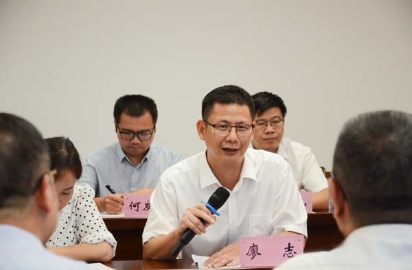 廖志表明此次调研的目的。他指出,国家区域医疗中心项目建设是赣州市重点调研课题之一,希望能以此次调研为契机,与中山一院广西医院交流经验、探讨方法,共同破解在国家区域医疗中心项目建设过程中所遇到的难点堵点,着力解决群众跨区域就医和看病难问题,为群众提供更优质的医疗服务。