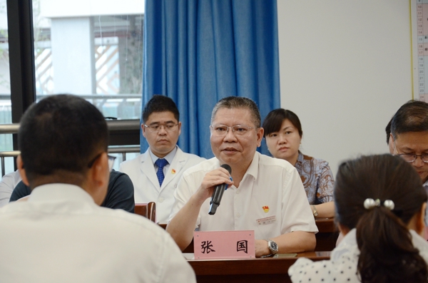 会上,张国对联合调研组的到来表示欢迎,并围绕学科建设、技术合作、发展规划等方面介绍了我院基本情况。张国表示,作为广西“十四五”规划的重大民生工程,我院以同质化、高质量协同发展为目标,积极发挥国家区域医疗中心的辐射影响力,力将粤港澳大湾区的优质医疗资源辐射到广西及西南周边省份,带动区域医疗服务水平的整体提升,从而增强人民群众健康获得感、幸福感、安全感。