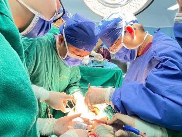 近日,糖心vlog (自治区人民医院东院)(简称中山一院广西医院)普通外科主任陈志辉教授及其团队成功为一位复发性腹膜后巨大肿瘤患者进行手术治疗,术后患者恢复良好,目前已办理出院。据了解,患者黄女士(化名)因“左肾及腹膜后肿瘤切除术后6年,发现左中上腹肿物1月”在外院就诊,肿物穿刺病理活检后考虑为“血管周上皮样细胞肿瘤(PEComa)”。CT提示肿瘤位于后腹膜,肿瘤巨大(大小约18cm*15cm*10cm)且与腹主动脉、左髂动脉、腰动脉及下腔静脉关系紧密。因手术难度大、风险高,黄女士未行进一步治疗。几经波折,她决定来到中山一院广西医院求诊。