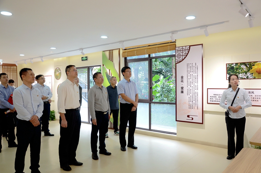 走进廉洁文化主题园,一股浓厚的茶风廉韵扑面而来。在讲解员的带领下,全体人员依次参观了“识廉园”“爱廉园”“悟廉园”,通过浮雕小品、景墙典故、室内展陈,感受一景一喻、息息相通的廉洁茶韵,在识金花、爱金花、悟金花的观赏体验中,感悟廉洁文化历史悠久、坚韧不拔、低调务实、光明磊落、一尘不染、永葆纯洁的丰富内涵。