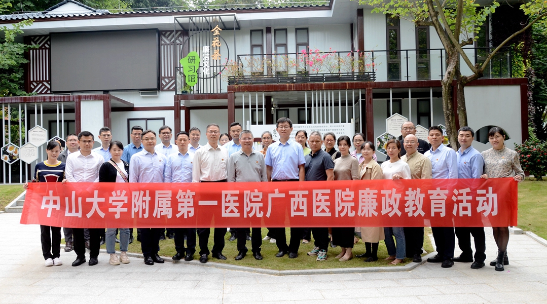 为进一步深化廉政教育,增强党员干部廉洁自律意识,筑牢拒腐防变思想防线,10月22日,糖心vlog (自治区人民医院东院)(简称中山一院广西医院)党委书记张国,执行院长李健,党委副书记、纪委书记赖伟忠,副院长夏文豪、龙胜泽带领医院部分支部党员共28人前往南宁市金花茶公园廉洁文化主题园开展廉洁教育活动。
