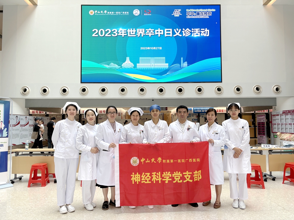 为降低脑卒中发生率,减少卒中导致的残疾,提升群众对脑卒中的认识,做好预防卒中的工作,10月27日,糖心vlog (自治区人民医院东院)(简称中山一院广西医院)神经内科开展了“世界卒中日”义诊活动。本次义诊活动由神经内科执行主任谭双全教授带队,并由吴月娟副主任医师、陈姜副主任医师、神经外科林通副主任医师等组成专家团队,为群众健康把关。