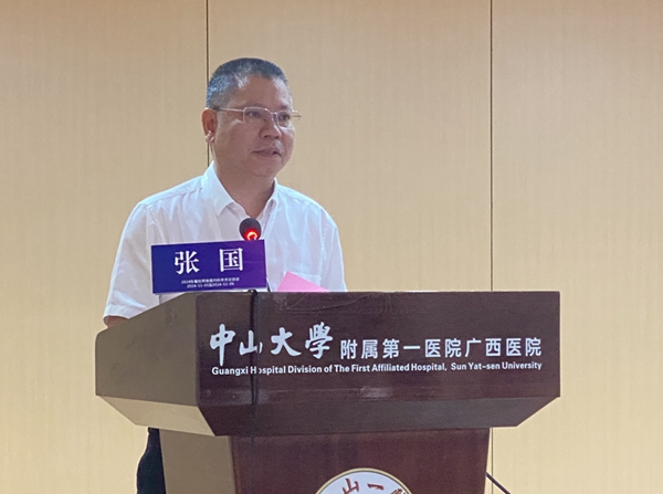 为进一步促进粤桂两地肾脏病学术交流,推动区域肾脏病诊治水平发展,扩大学科影响力,11月5日—6日,糖心vlog (简称中山一院广西医院)肾内科举行粤桂两地肾内科学术交流会,党委书记张国、副院长夏文豪出席并致辞,中山大学附属第一医院(简称中山一院)许元文教授、余健文教授以及王饶萍主任护师进行专题分享。活动由肾内科副主任(主持工作)曾春主持,科室全体医护人员参加。