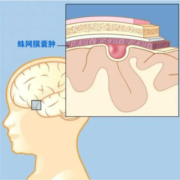 蛛网膜囊肿,顾名思义,是发生在大脑和脊髓表面的蛛网膜之下的一种囊肿。蛛网膜是覆盖在大脑和脊髓表面的一层薄膜,其下有脑脊液的循环。如果在胎儿发育时蛛网膜局部形成封闭结构,脑脊液无法流出,积聚形成囊肿。