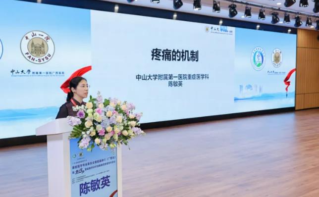 在专题授课环节,广州市第一人民医院曾军教授,广州医科大学附属第一医院、国家呼吸医学中心徐永昊教授,中山大学附属第一医院陈敏英教授围绕《新型镇痛药物的临床研究进展》《长程ECMO患者的管理》《疼痛的机制》的主题进行授课。