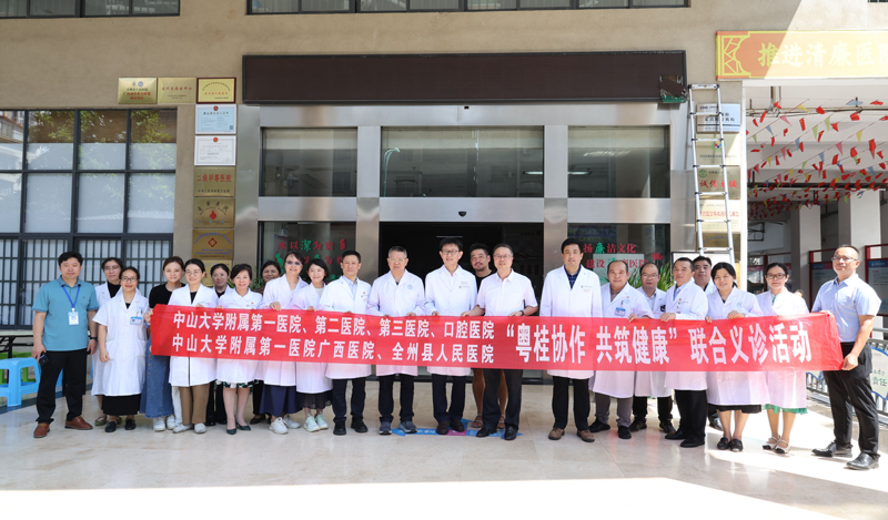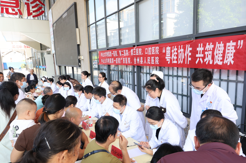 仪式结束后,中山一院广西医院联合农工党中山大学基层委员会组成专家义诊队伍,在全州县人民医院举行了主题为“粤桂协作 共筑健康”的义诊活动。专家们耐心细致地为前来就诊的群众提供专业的医疗咨询服务,现场气氛热烈而有序。这次义诊不仅为两院医务人员提供了宝贵的交流机会,也让当地群众在家门口就享受到了国家级医疗专家的诊疗服务,进一步推动优质医疗资源下沉。