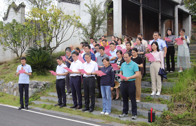 赖伟忠同志带领全体党员干部在鲜红的党旗下重温入党誓词,激励大家“不忘初心、牢记使命”,永远奋斗。