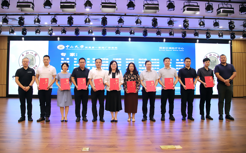 “粤桂鼻颅底疾病多学科诊疗联盟”副组长瞿申红、龙健婷给受聘专家代表颁发聘书。