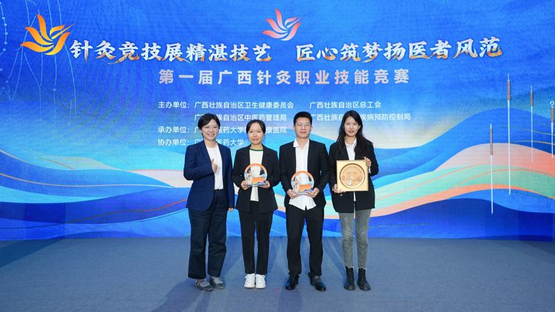 10月23日-24日,由自治区卫生健康委、自治区中医药局、自治区总工会、自治区疾控局联合主办的第一届全区针灸职业技能竞赛在广西南宁市举行,全区27支代表队共54名选手同台竞技。中山大学附属第一医院(简称中山一院)广西医院在本次竞赛中,以总分排名第四(综合医院排名第一)的成绩荣获团体三等奖,参赛选手黄远西、陈招在个人项目中获个人三等奖。