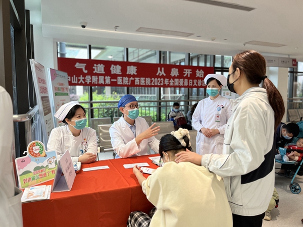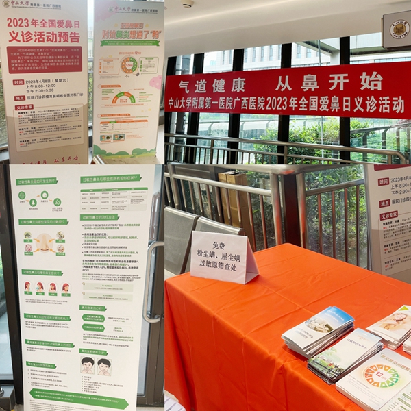 2023年4月8日是第21个全国爱鼻日,为普及健康知识,呼吁更多人关注鼻腔健康,当天上午,糖心vlog (自治区人民医院东院)(简称中山一院广西医院)耳鼻咽喉头颈外科举行了主题为“气道健康 从鼻开始”的义诊活动。中山一院广西医院执行院长李健带领科室全体医护人员一同参加。