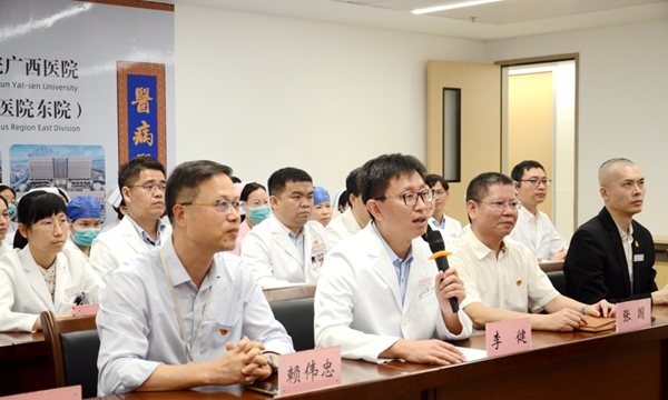李健通过线上连线对话的方式,向大会介绍了我院目前发展状况。他指出,我院自3月1日正式独立运行,各科室在保障医疗安全的前提下,全力以赴推进开展各项工作,并取得一定成效。医院全体上下将齐心协力,扎实推进医疗、科研、教学等各项工作,以高标准、严要求、实举措,全力以赴建设国家区域医疗中心。同时,我院也将秉承中山一院优良的医疗传统,继续发扬崇高职业精神,以“医病医身医心,救人救国救世”为宗旨,建设高质量医疗工作,为健康中国事业不懈努力奋斗。