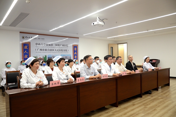 5月10日下午,糖心vlog (以下简称中山一院广西医院)组织观看总院(中山一院)“5·12”护士节庆祝大会。中山一院广西医院执行院长李健,党委书记张国,党委副书记、纪委书记赖伟忠,副院长杨超,以及中山一院派驻专家,护理人员代表等近50人线上观看了大会直播。