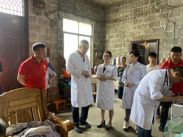 在得知有些村民因行动不便不能来到义诊现场,我院特地派出由副院长、神经外科杨超教授以及神经内科谭双全教授、手术麻醉中心房洁瑜教授组成的专家小组,专程前往村民家中,为村民进行身体检查,指导治疗和用药。