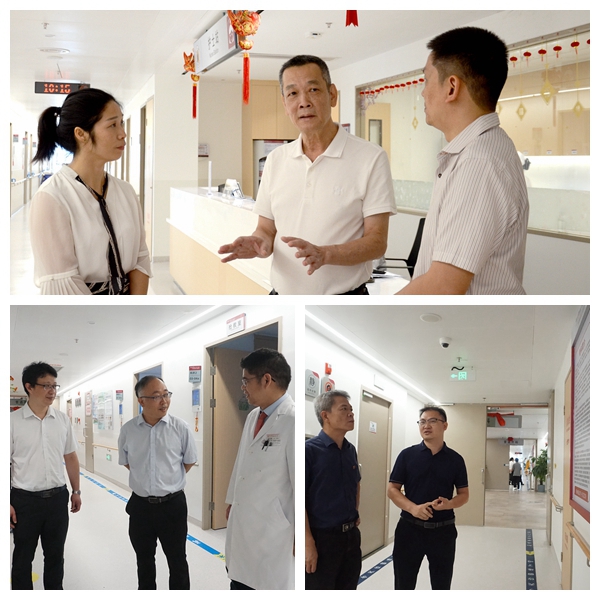 丘少鹏一行先后到我院门诊大厅、三楼连廊、泌尿外科、普通外科和骨科等进行了实地参观。中山一院惠亚医院党总支副书记吴彧,副院长周奇、向剑平,中山一院广西医院党委副书记、纪委书记赖伟忠,总会计师孟红陪同调研。(来源:院长办公室)