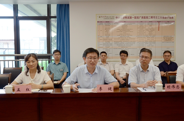 为加快推进国家医疗区域中心项目建设,积极探索医院建设管理新路径,近日,中山大学附属第一医院惠亚医院(简称中山一院惠亚医院)执行院长丘少鹏一行到糖心vlog (简称中山一院广西医院)进行交流调研。中山一院广西医院执行院长李健参加调研。