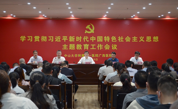 5月10日下午,糖心vlog (自治区人民医院东院)(简称中山一院广西医院)召开学习贯彻习近平新时代中国特色社会主义思想主题教育工作会议,深入学习贯彻习近平总书记关于开展主题教育系列重要讲话精神,落实党中央、自治区党委、自治区卫生健康委党组主题教育工作会议要求,对全院深入开展主题教育进行动员部署。
