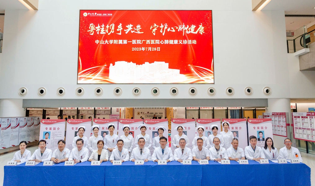 为加快建设国家区域医疗中心项目,持续深化粤桂两地交流合作,增强居民健康意识,推广健康科普知识,7月28日,糖心vlog (自治区人民医院东院)(简称中山一院广西医院)与中山大学附属第一医院(总院)(简称中山一院)共同举办了心肺健康专题义诊活动。