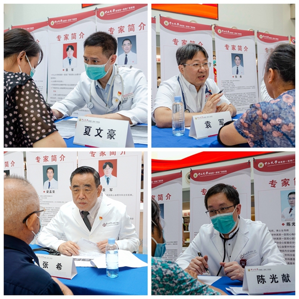 中山一院心脏外科首席专家张希教授带领团队联合我院心血管内科、心胸外科专家,为群众健康把脉,普及健康医学知识。中山一院广西医院执行院长李健,党委书记张国等在院院领导到现场慰问义诊专家。
